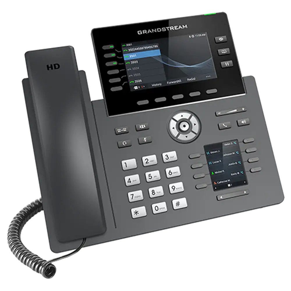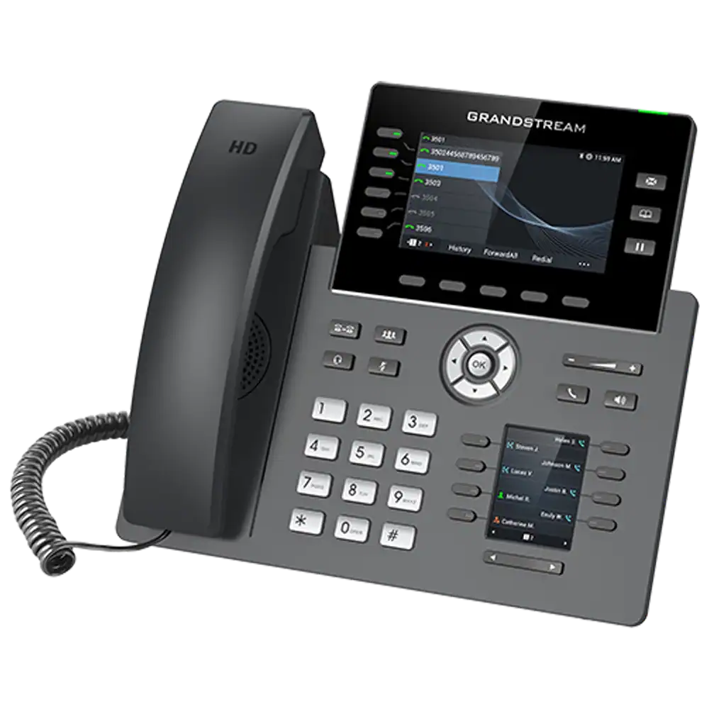 6-Line Professional IP Phone Designed for Mass Deployment and Easy Management. The GRP2616 features 48 virutal multi-purpose keys (VPKs), integrated Wi-Fi, Bluetooth support, a 4.3 inch color LCD with swappable face plates for easy logo customization, additional 2.4 inch display screen.